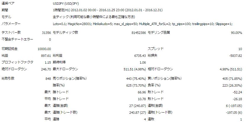 ちなみに・・・本機能を入れる前(固定ストップロス)の同期間バックテストを行った結果が以下です。あれ・・・こっちのほうが成績がいい・・・。